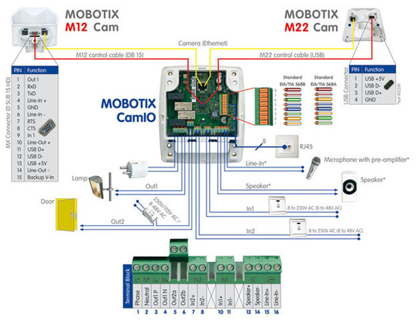 The CamIO input/output module is the ideal platform for door intercoms. Doorbell buttons and alarm contacts can be connected to the inputs, and door openers, exterior lights, etc., can be controlled via the outputs. The CamIO is designed for switching loads up to 2 x 500 watts (230 V). Thanks to the powerful integrated loudspeaker, door opener relay and two switch inputs, this module is ideal for setting up video door stations on for example, remote building entrances.