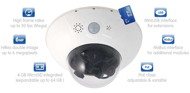 İki lens, iki yüksek çözünürlüklü görüntü sensörü, 64 GB dahili bellek ve azami 6 megapiksel büyüklüğünde bir çift görüntü, D14D DualDome kamerayı verimli bir güvenlik çözümü haline getirmektedir: Örneğin tek bir kamera ile mahalin iki farklı bölümünü, göze batan mekanik aksam olmadan denetlemek mümkün!