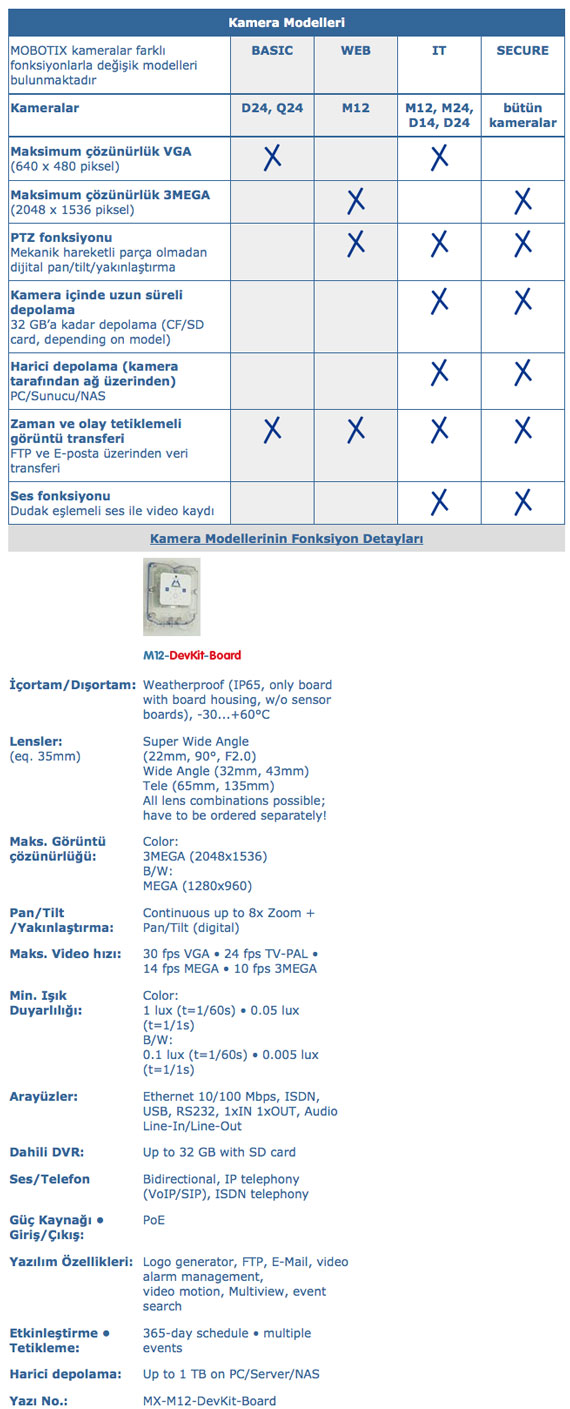 Görüntü Sıkıştırma | MxPEG, M-JPEG, JPG, H.263 (Video-VoIP-Telephony) |